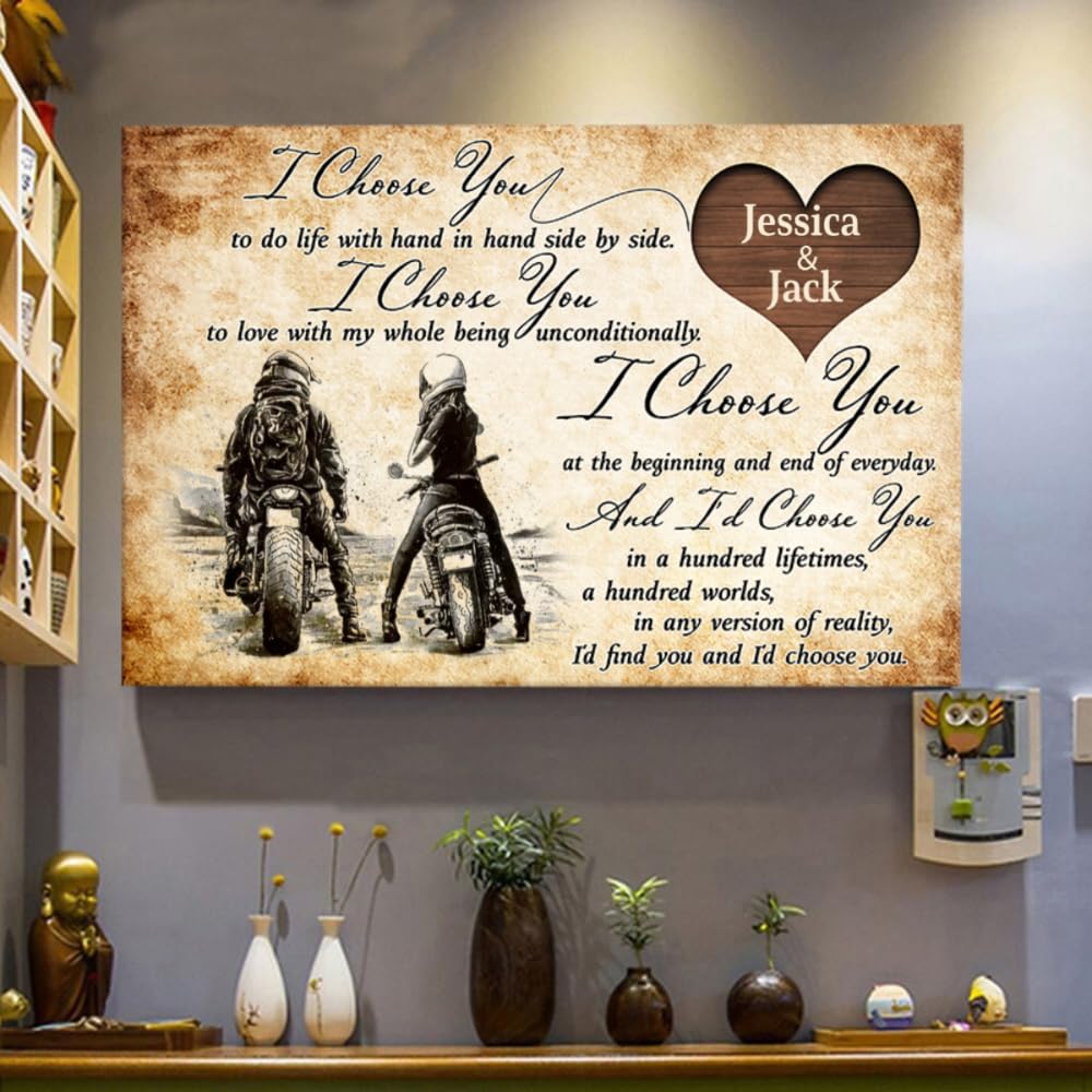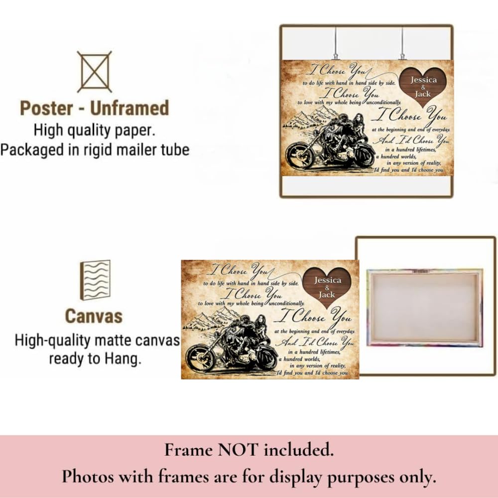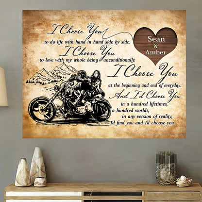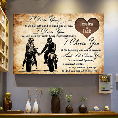 I Choose You - Gift for a Biker - Personalized Couple Poster, Custom Name Biker Couple Poster Canvas TD0041