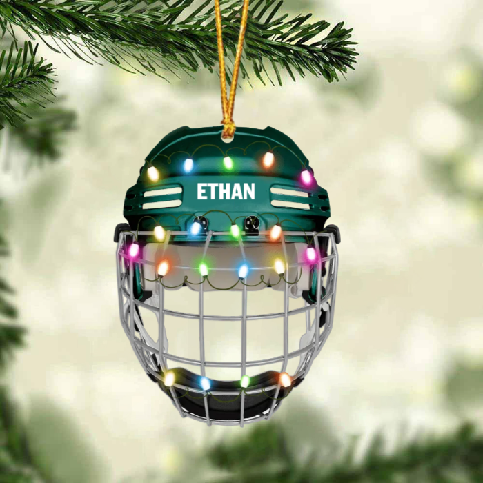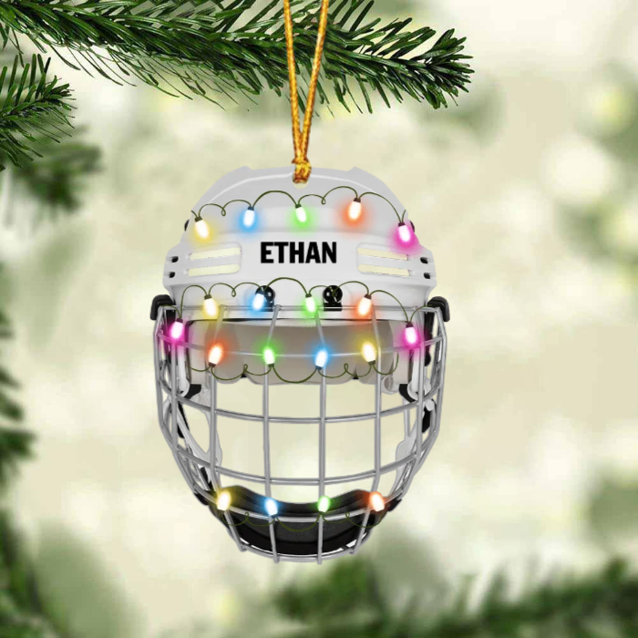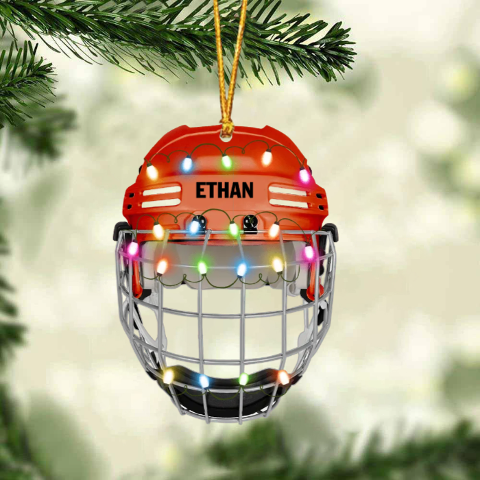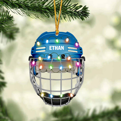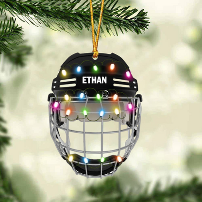 Ice Hockey Helmet With Cage - Personalized Christmas Ornament - Gifts For Ice Hockey Lovers OO1811