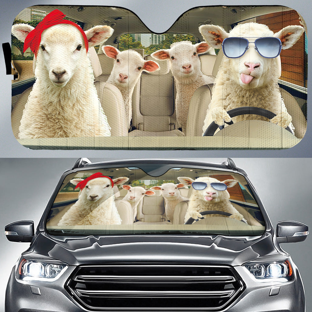 Driving Sheep All Over Printed 3D Sun Shade Car Cover, Best Sun Shade Car SO0373