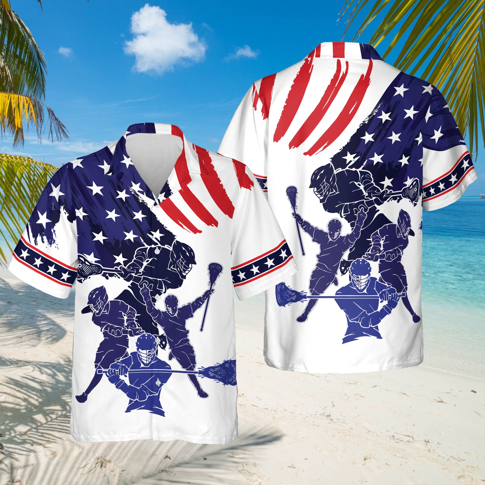 American Flag Lacrosse Hawaiian Shirt, Lacrosse Hawaiian Aloha Shirts Short Sleeve Beach Holiday Casual Shirts HO2996