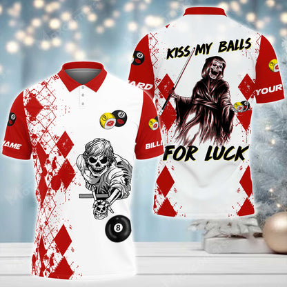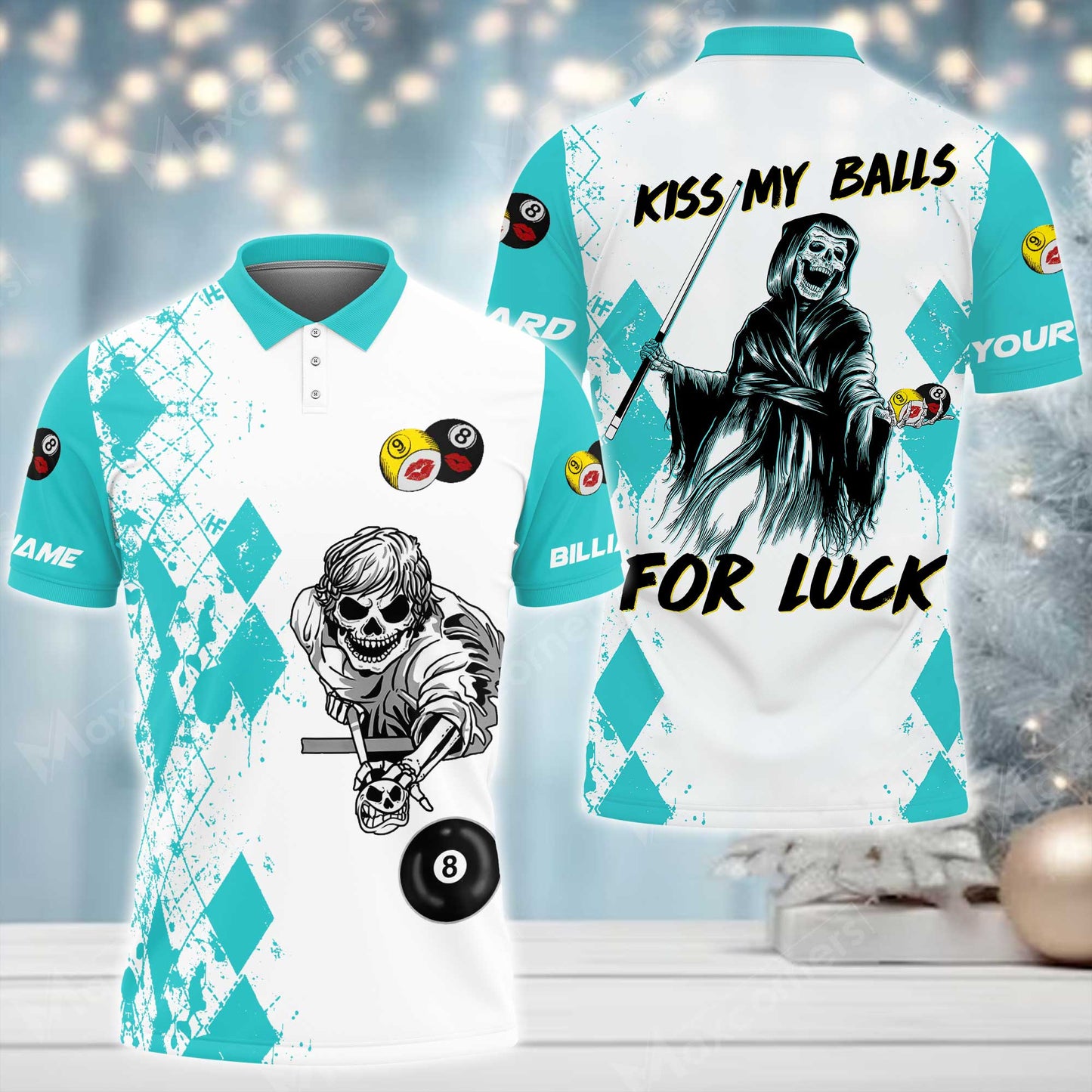 Lasfour Argyle Pattern Billiards Kiss My Balls For Luck Death 3D Shirt (Multi Color Options) BIA0270