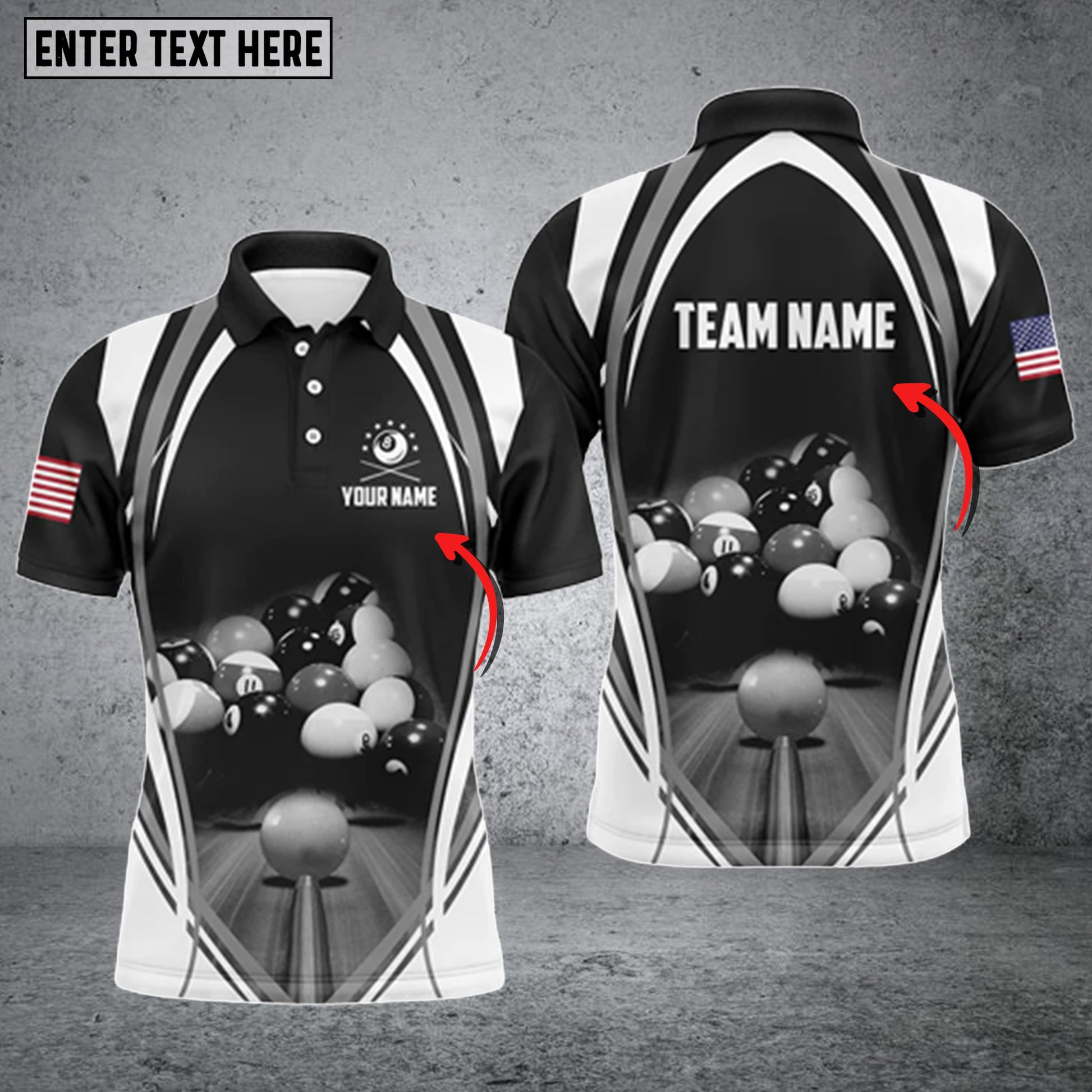 Lasfour Billiard Balls US Flag Black Personalized Name 3D Shirt BIA0589