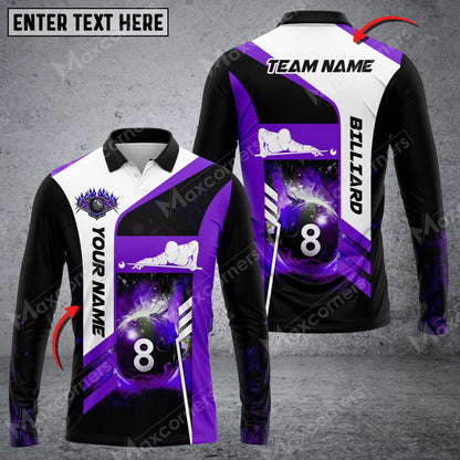 Lasfour Billiards 8 Ball Fire Multicolor Option Customized Name Long Sleeve Polo Shirt BIA0392
