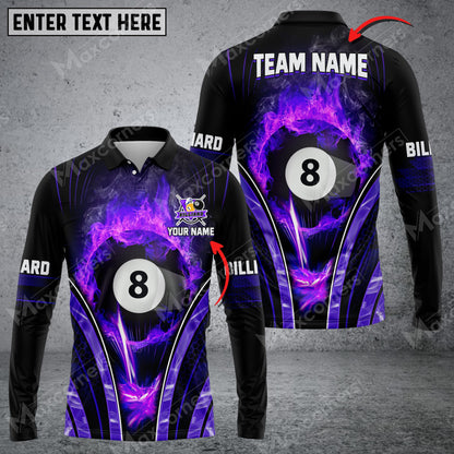 Lasfour Billiards 8 Ball Fire Smoke Multicolor Option Customized Name Long Sleeve Polo Shirt BIA0146
