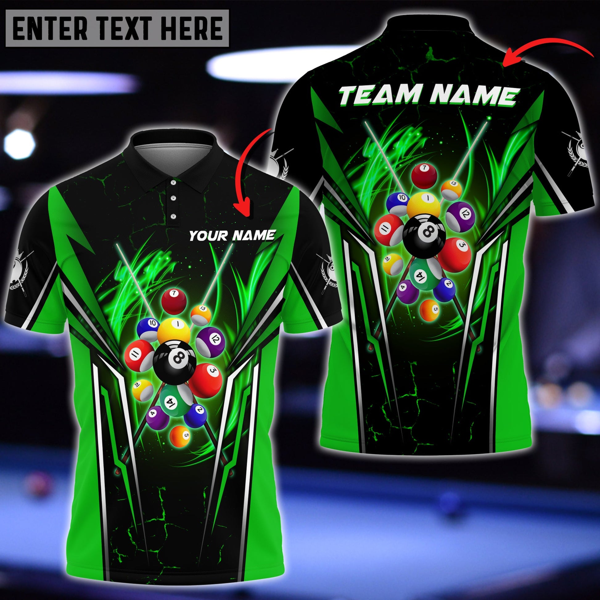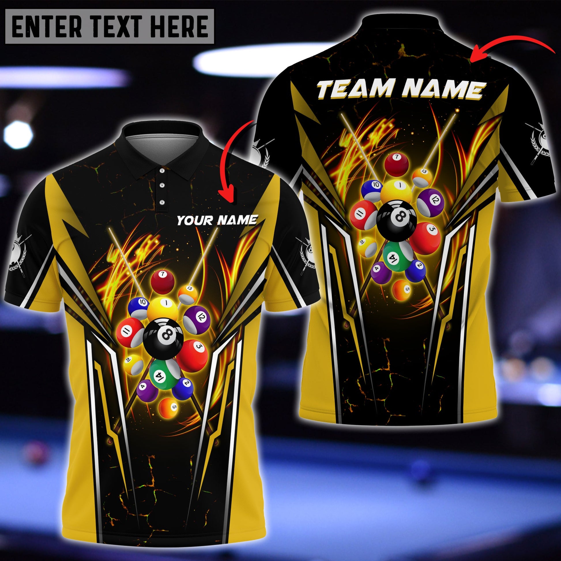 ALL-OVER PRINT- Make your billiards shirts truly one-of-a-kind by customizing it with our all-over print personalization option. Add your own designs, images, or logos to create a unique look that reflects your style and personality.