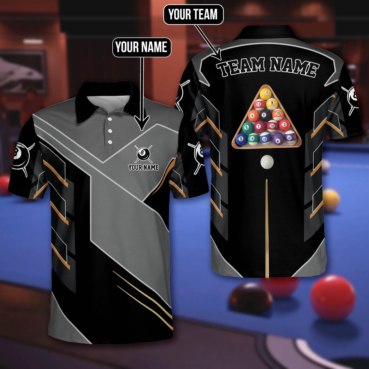 One of the standout features of our Billiard Polo Shirt is the ability to personalize it. Express your individuality and team spirit by adding your own touch to the shirt. With our billiard shirt personalized, you have the freedom to customize your shirt with team logos, names, or personalized embroidery. Stand out from the crowd and showcase your unique style.Functionalities: