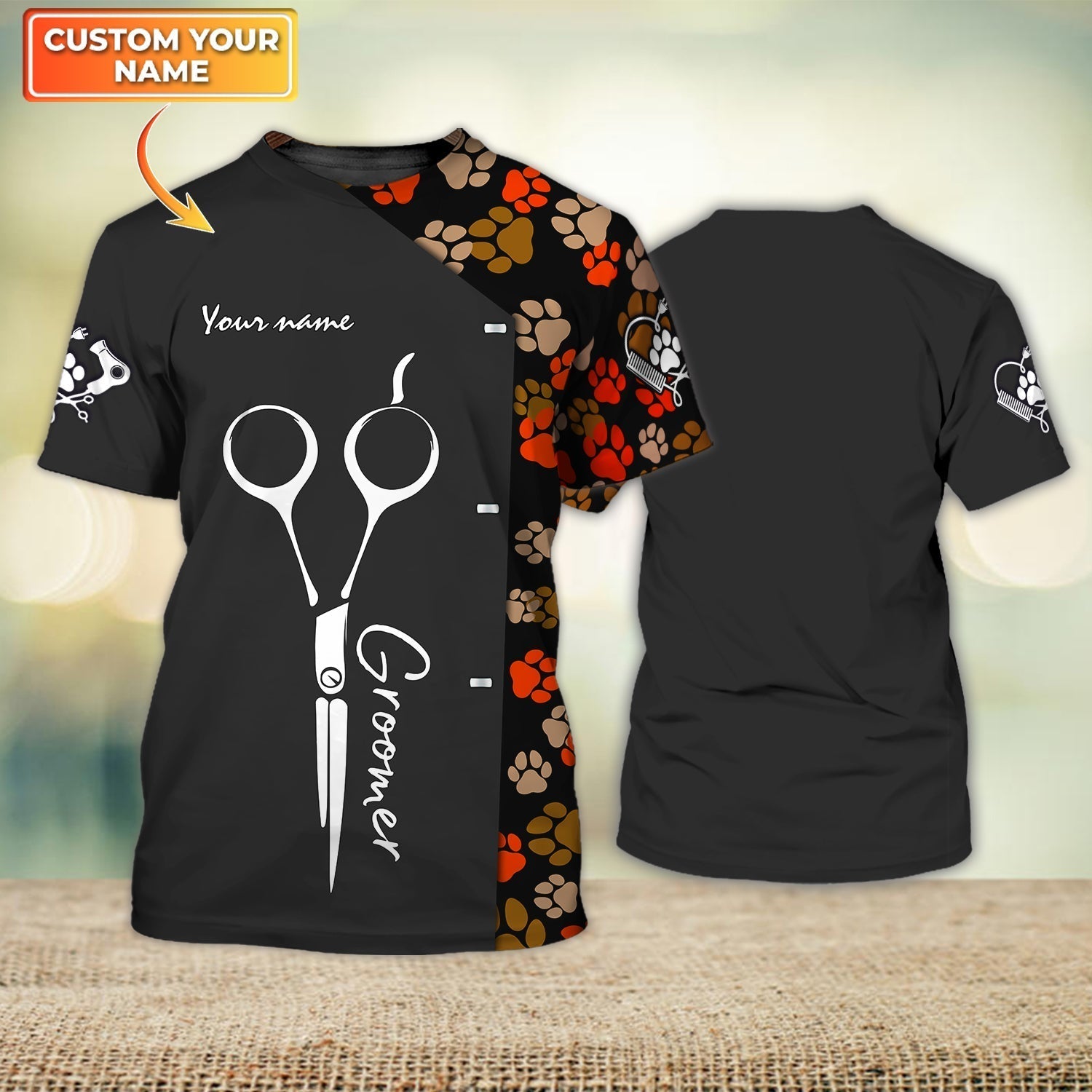 Lasfour Custom Paw Dog Groomer Tshirt Pet Groomer Shirt Groomers Uniform Red Salon Pet TO1230