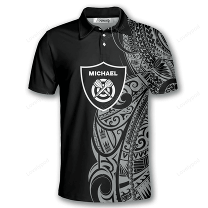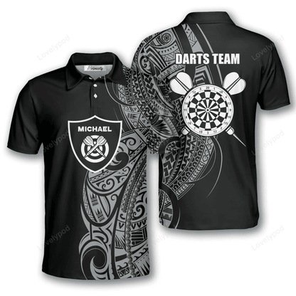 Lasfour Shield Black White Tribal Tattoo Darts Personalized Name And Team Name 3D Shirt DMA0200