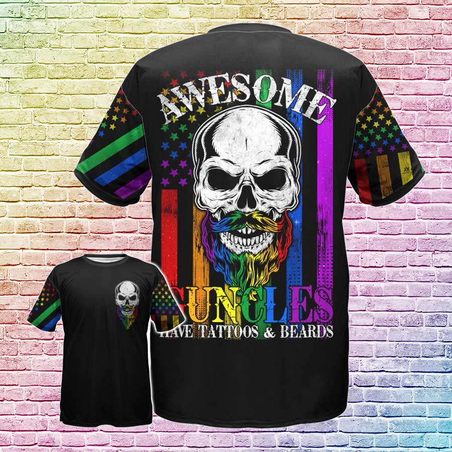 Gay Pride Shirt, LGBT Awesome Guncles T Shirt, Guncle Have Tattoos And Beards Shirts For LGBT Pride Month