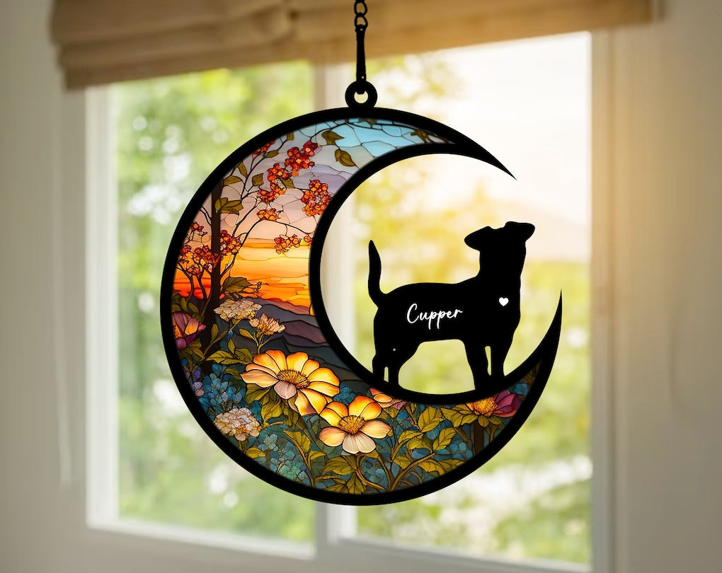 Loss of Pet Sympathy Gift, Pet Memorial Suncatcher, Handmade Custom Name Dog Decor, Engraved Dog Lovers Gift, Gift for Dog Lovers OA0233