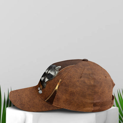 Lovely Funny Racoon Leather Style Baseball Cap Lasfour CO0783