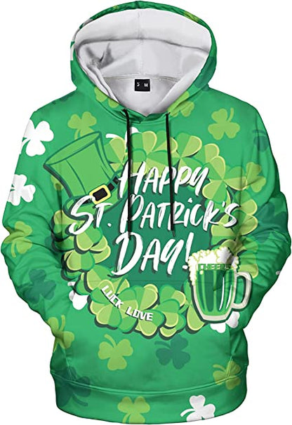 Luck Love Happy St Patrick's Day Hoodie 3D Printed Graphics Hoodies Cool Realistic with Designs Pullover Sweatshirts for Men Women PO0201