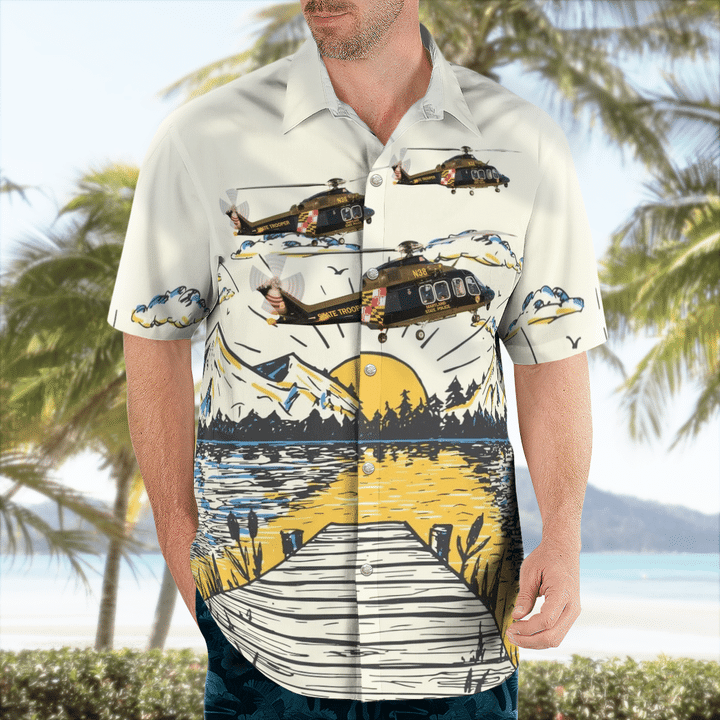 Maryland State Police Trooper 1 Helicopter Hawaiian Shirt, USA Patriotic Hawaiian Shirt HO0160