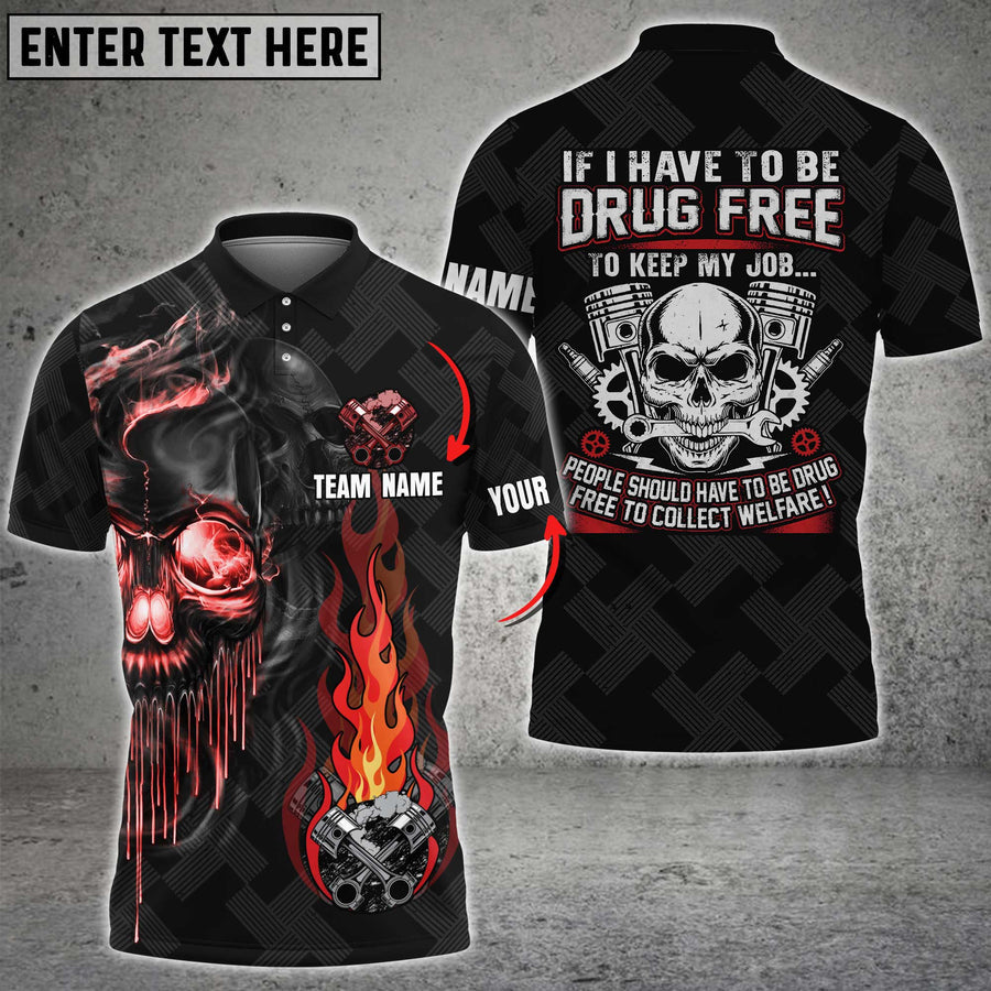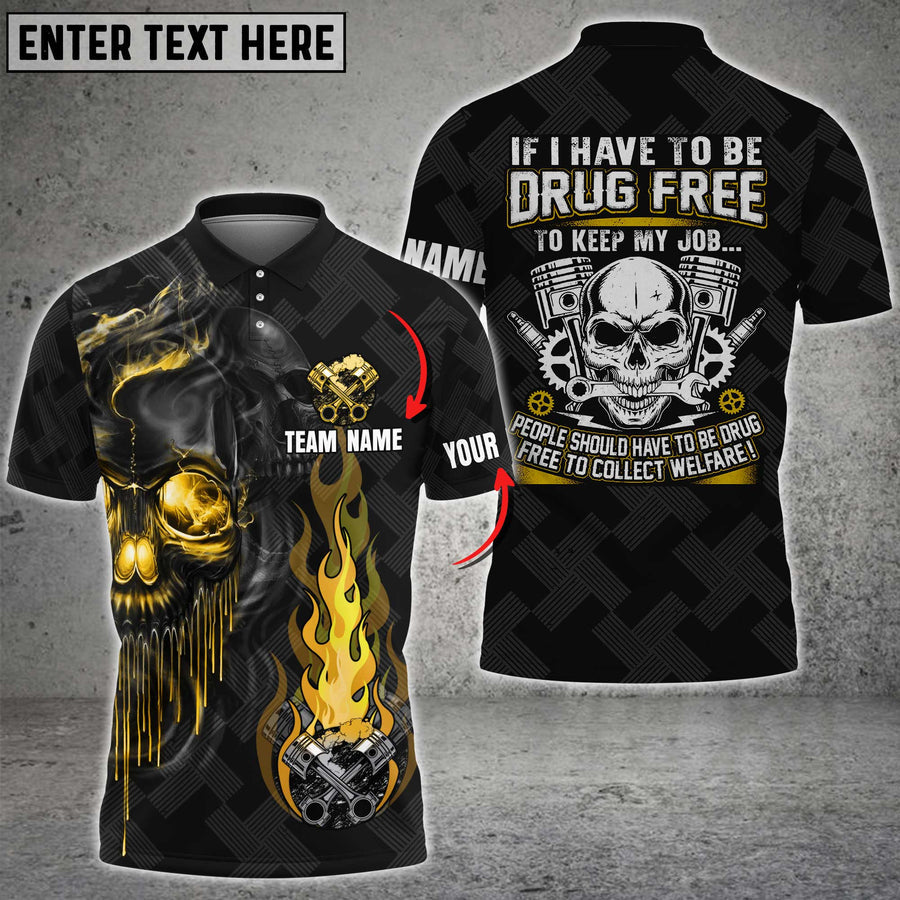 Mechanic Skull If I Have To Be Drug Free Custom Name Multi Color Printed 3D Polo Shirt TO3476