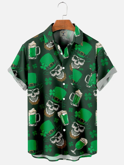 Men's St. Patrick's Day Spooky Elf Print Color Block Short Sleeve hawaiian Shirt PO0165