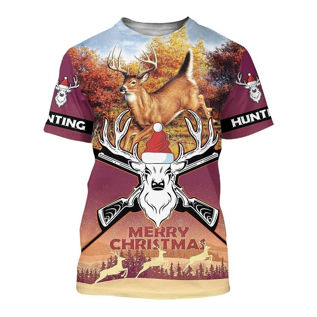 Merry Christmas Deer Hunting Hoodie 3D All Over Print Xmas Hunter Tshirt Christmas Gift For Deer Hunter TO2790