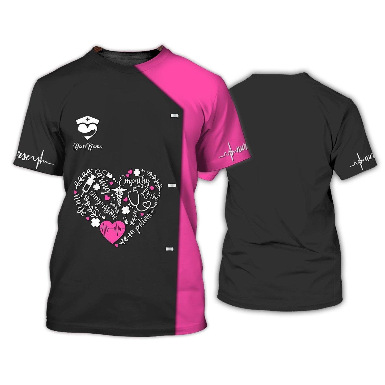 Nurse Heart 3D All Over Print Shirt Custom Medical Tee Shirt Black Pink, Nurse Uniform Shirt TO3325