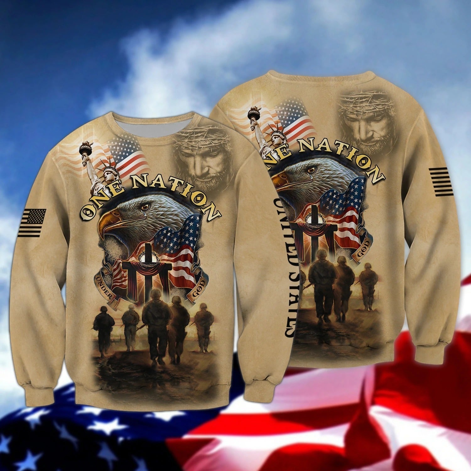 One Nation Under God 3D Tee Shirt, Veteran American Patriotic Full Print Shirt Hoodie, Independence Day 3D Hawaiian Shirts TO0222