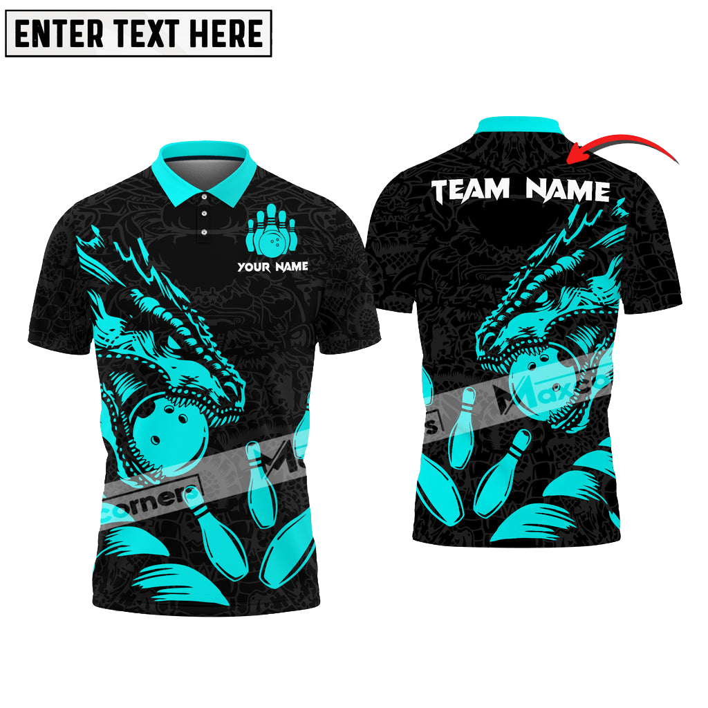 Bowling Ball and Pins Dragon Sport Jersey Pattern Multicolor Option Customized Name & Team Name 3D Polo Shirt BO0396