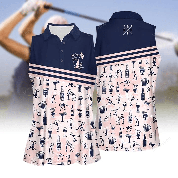 Par then bar stick figure women golf apparel, women short sleeve polo shirt, sleeveless polo shirt GY0033