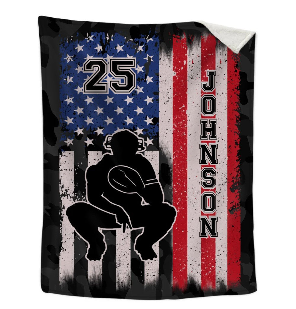 Personalized Baseball Blanket, Baseball Boy Sherpa Fleece Blanket, Custom Name Number Soft Cozy Plush Throw Blanket BD0070