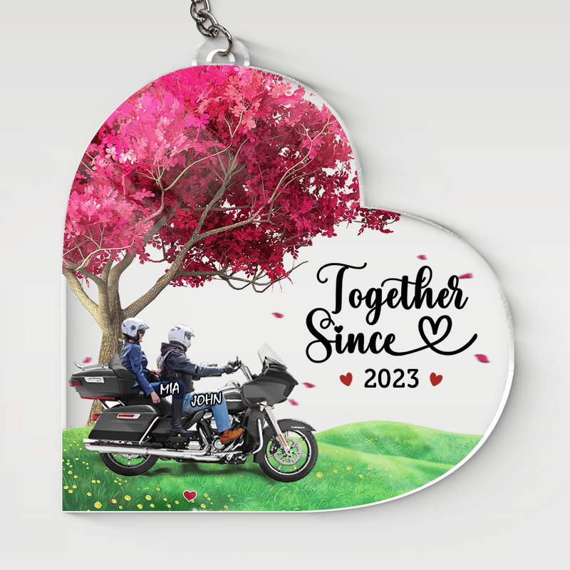 Personalized Biker Couple Road Glide Motorcycle Heart Couple Keychain, Gift for couple biker lover KO0043