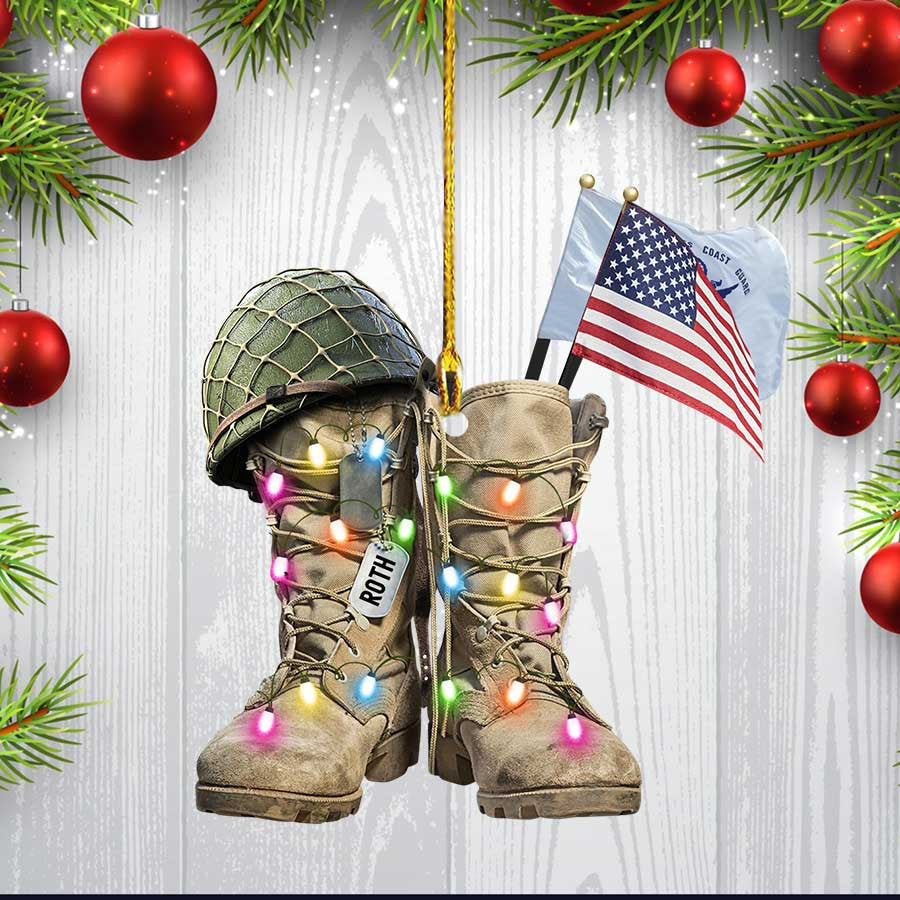 Personalized Boot & Helmet Acrylic Soldiers Ornament for Soldiers, Soldiers Ornament for Dad, Him OO3594