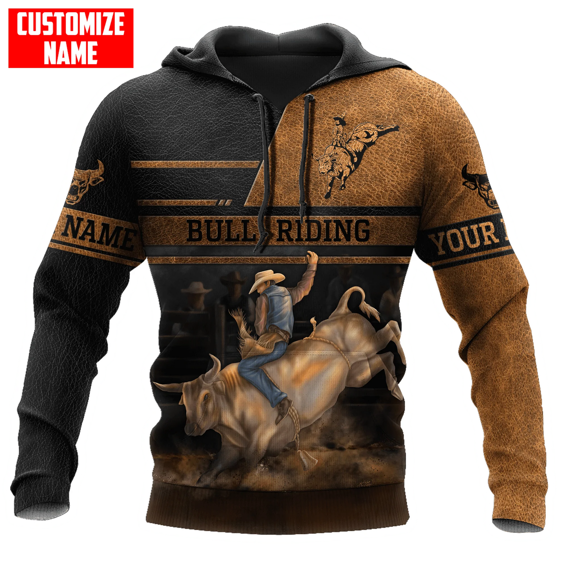 Personalized Bull Riding Brown Line Hoodie, 3D All Over Printed Leather Pattern Cowboy Hoodie SO0482