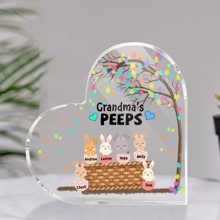 Personalized Bunny Heart Shaped Acrylic Plaque - Grandma's Peeps, Gift for Grandma, Mother's Day Gifts MI0514