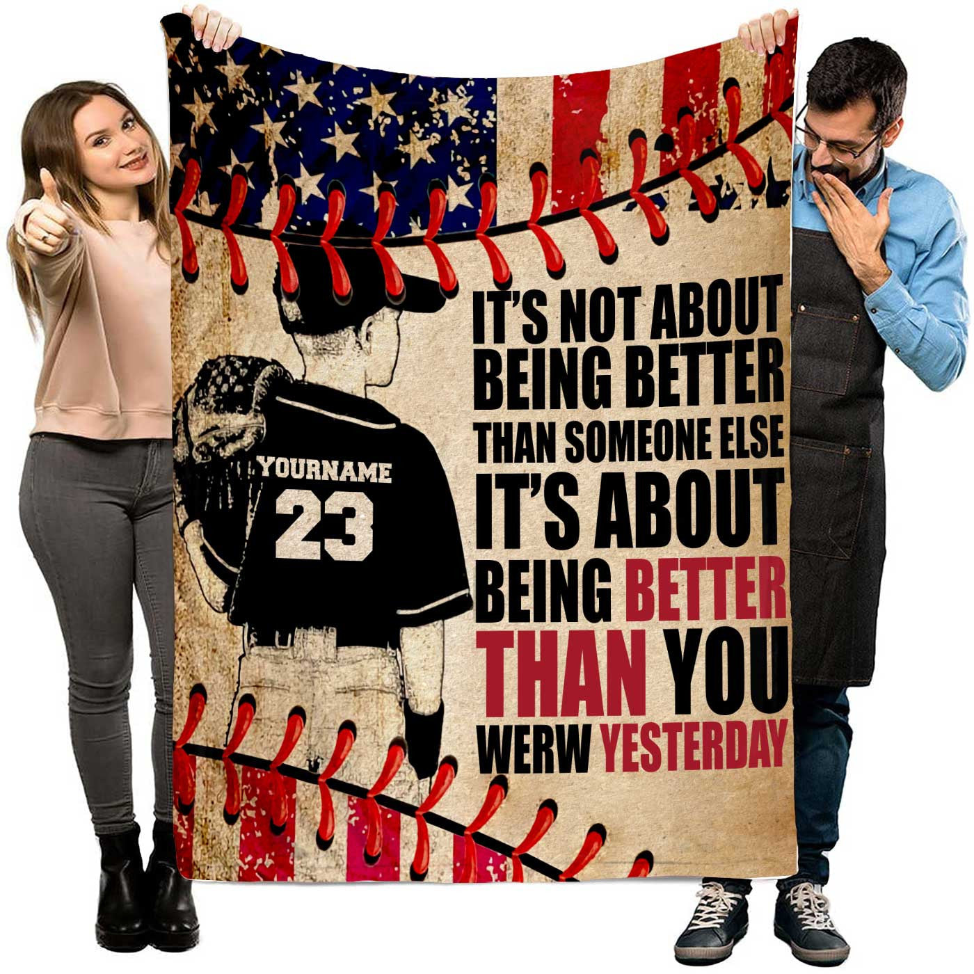Personalized Christmas Baseball Throw Blanket for Son, Custom Name & Number Baseball Team Gift BD0030