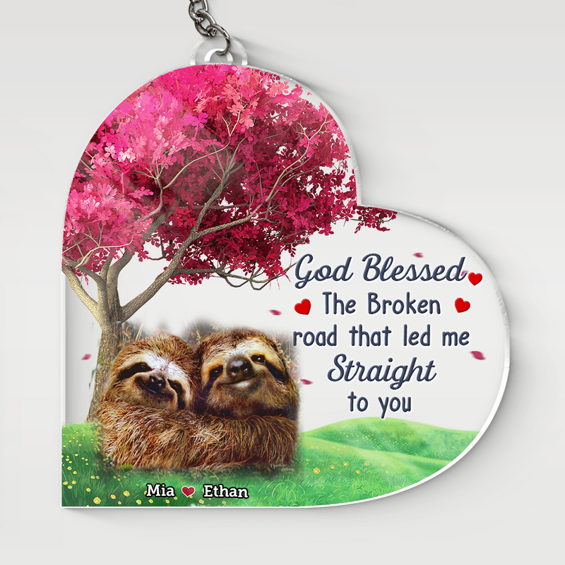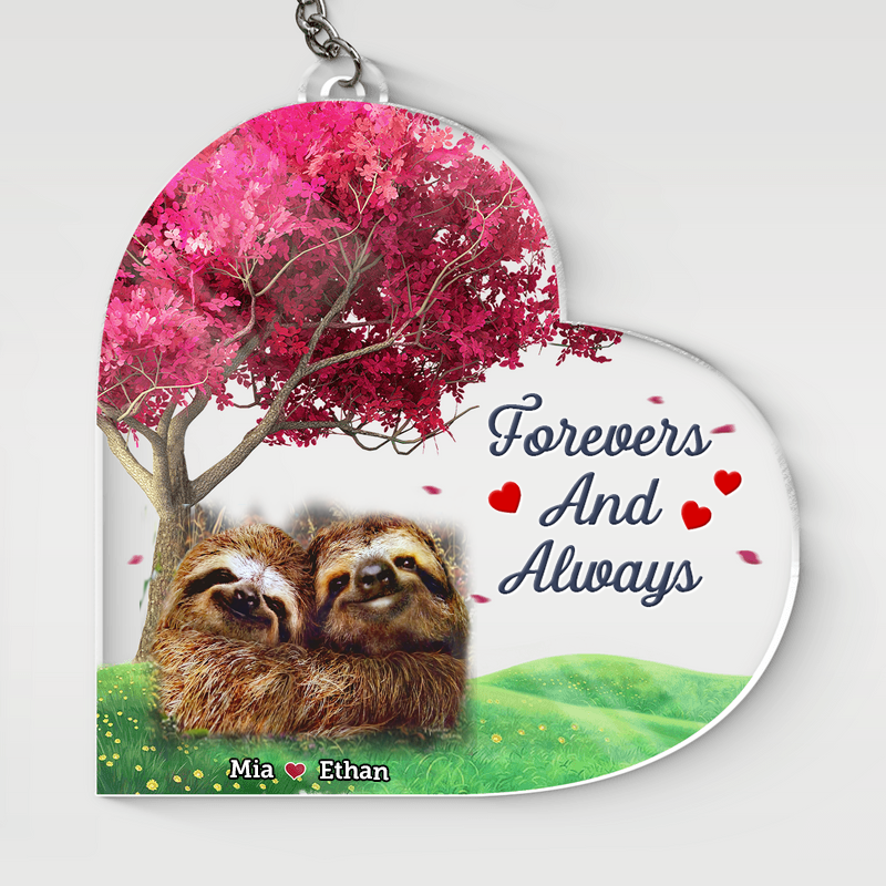 Personalized Couple Sloth Funny Heart Acrylic Keychain, Perfect Gift for Couple, Couple Keychain KO0039