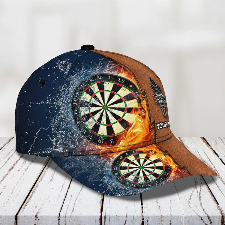 Personalized Dart 3D All Over Printed Baseball Cap, Water and Fire Art Dart Hat for Dart Lovers CO0017