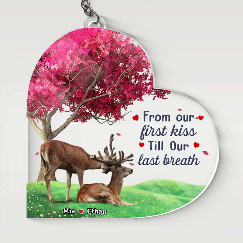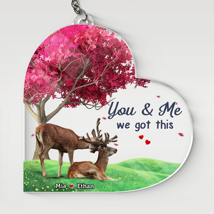 Personalized Deer Couple Heart Acrylic Keychain, Gift for Couple with Any Quote, Valentine Idea Gift for Him Her KO0042