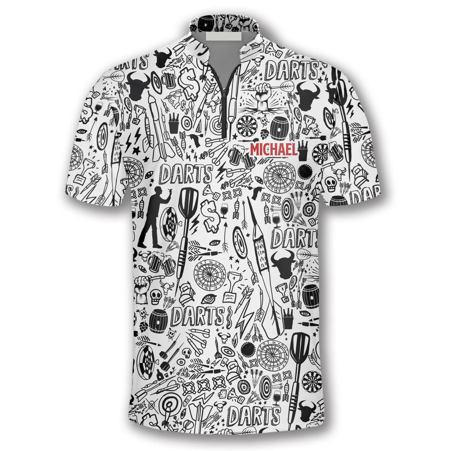 Personalized Doodle Pattern Custom Darts Jerseys for Men, Skull Dart Shirt SO0779
