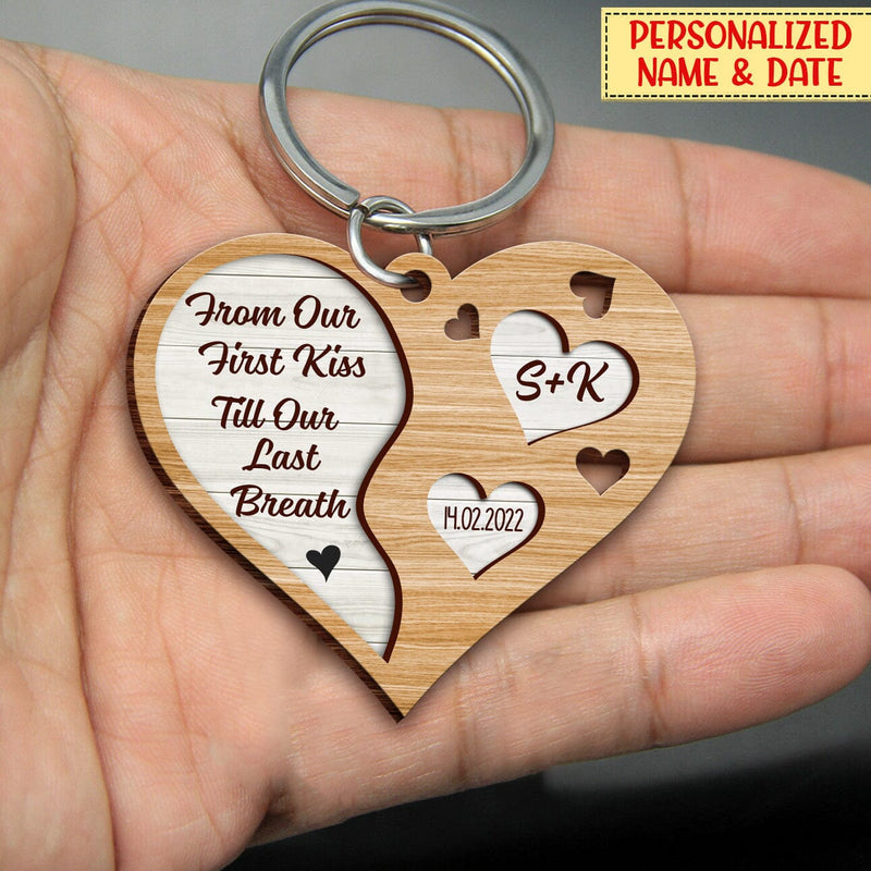 Personalized From Our First Kiss Till Our Last Breath Couple Wooden Keychain, Custom First Letter Name Keychain KO0083