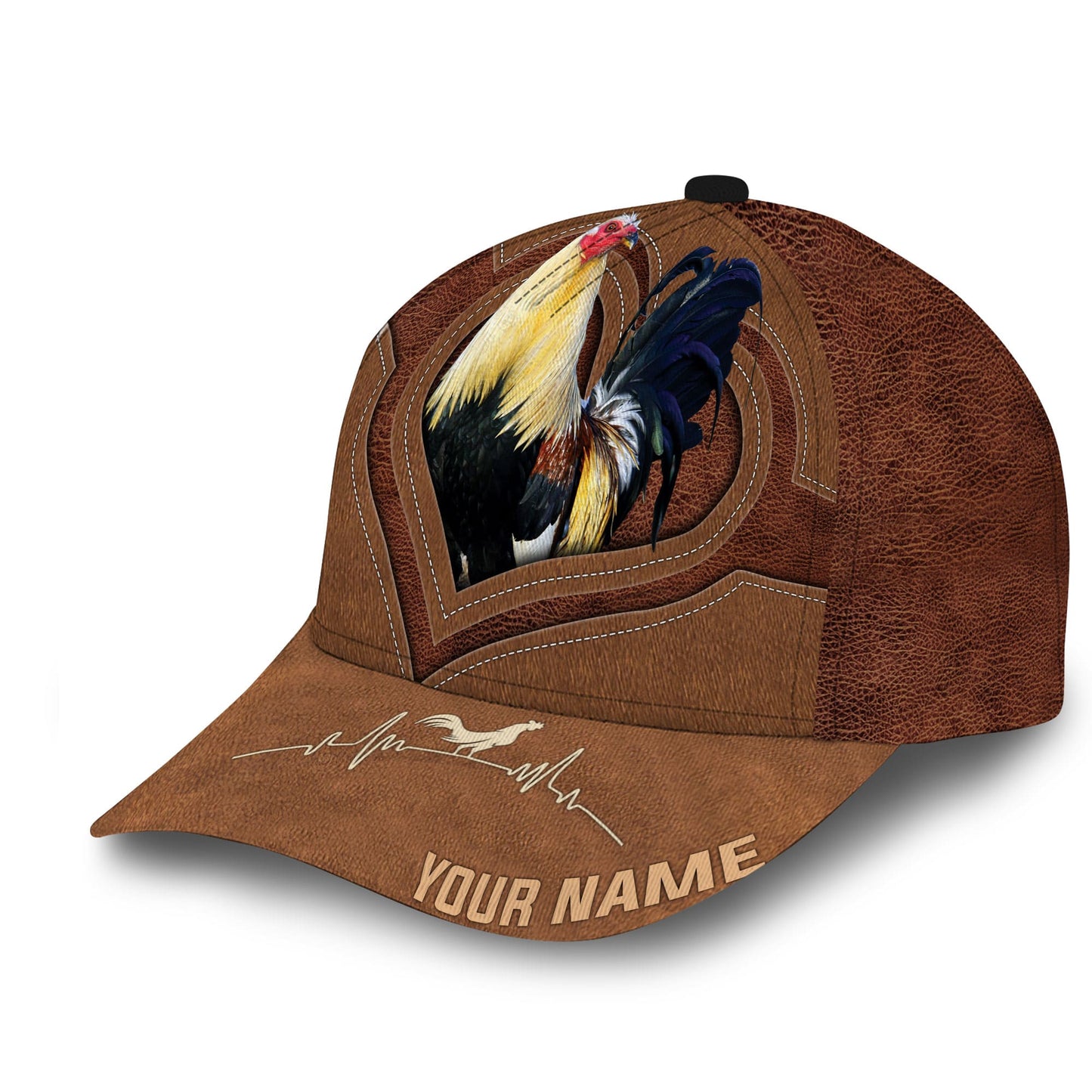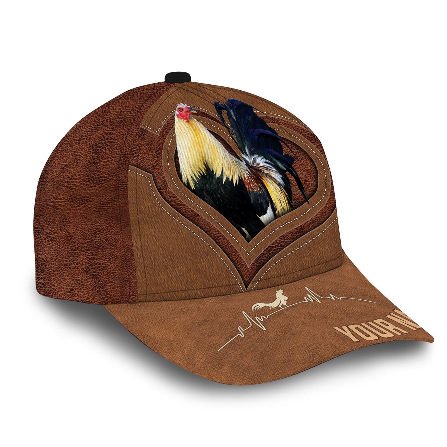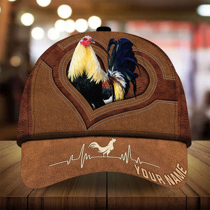 Personalized Full Printed 3D Hat Premium Unique Cap Leather Rooster Heartbeat, Rooster Cap, Chickent Hat CO0472