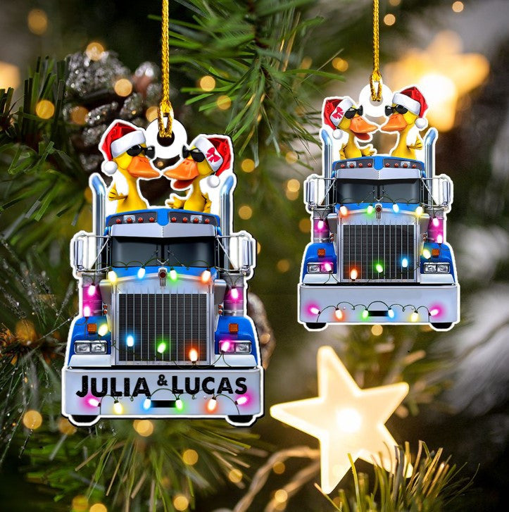 Personalized Funny Duck Couple on Truck Christmas Ornament for Truck Drivers OO3653