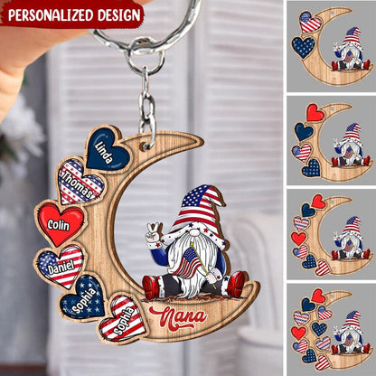 Personalized Gnome Grandma On The Moon With Heart Grandkids 4th Of July Independence Day KO0277