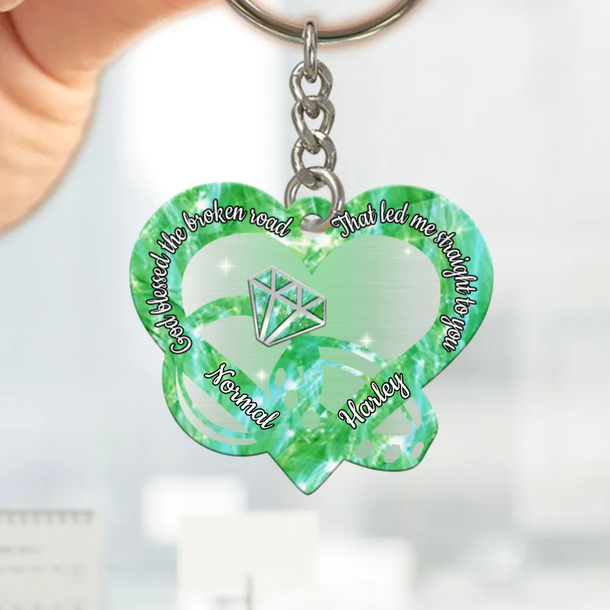 Personalized God blessed the broken road That led me straight to you Heart Couple Rings Multi Color Keychain KO0114