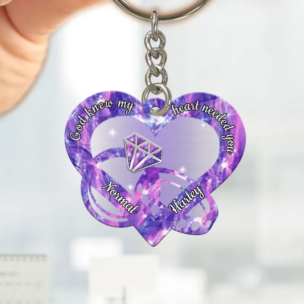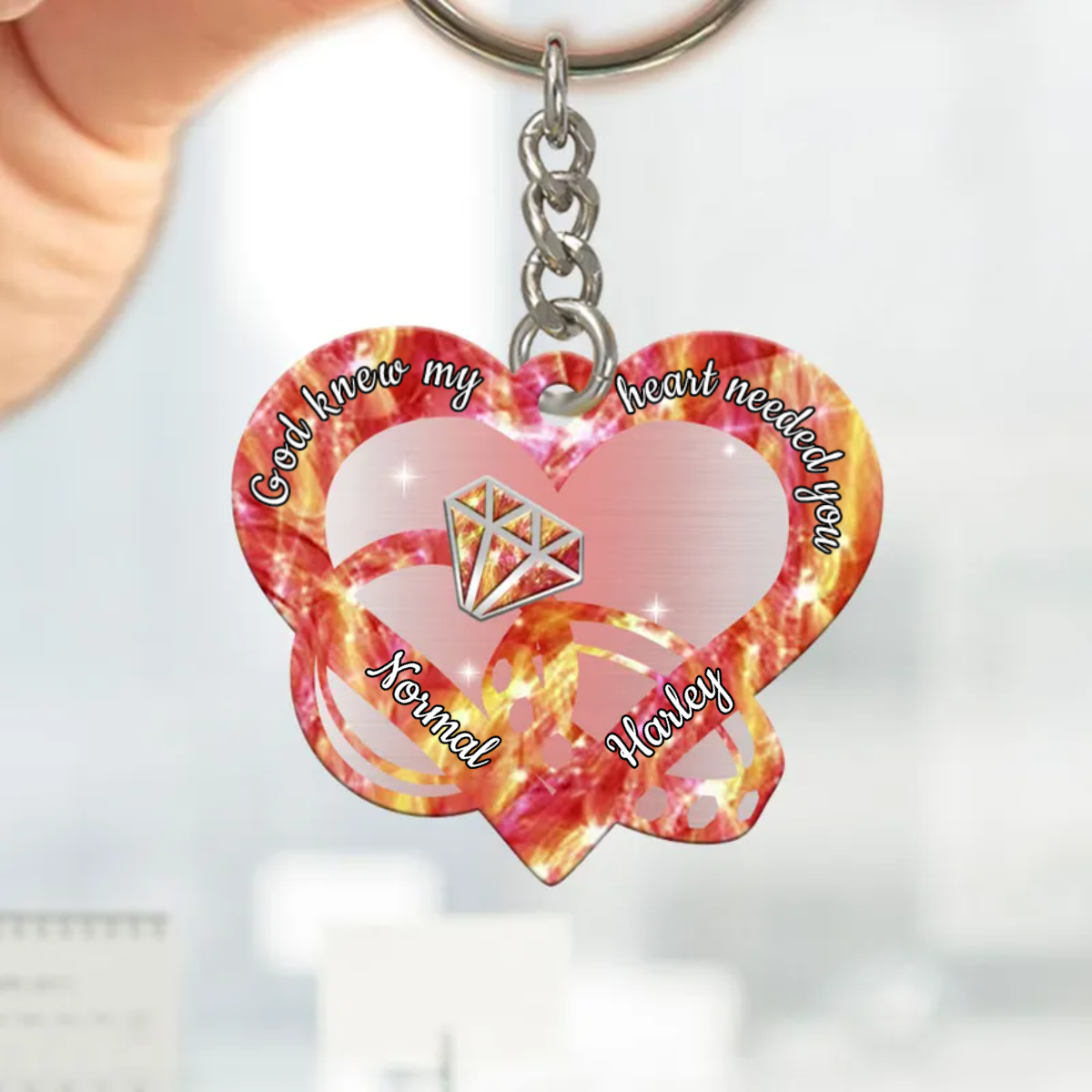 Personalized God knew my heart needed you Couple Rings Multi Color Keychain, Gift for Him Her KO0113