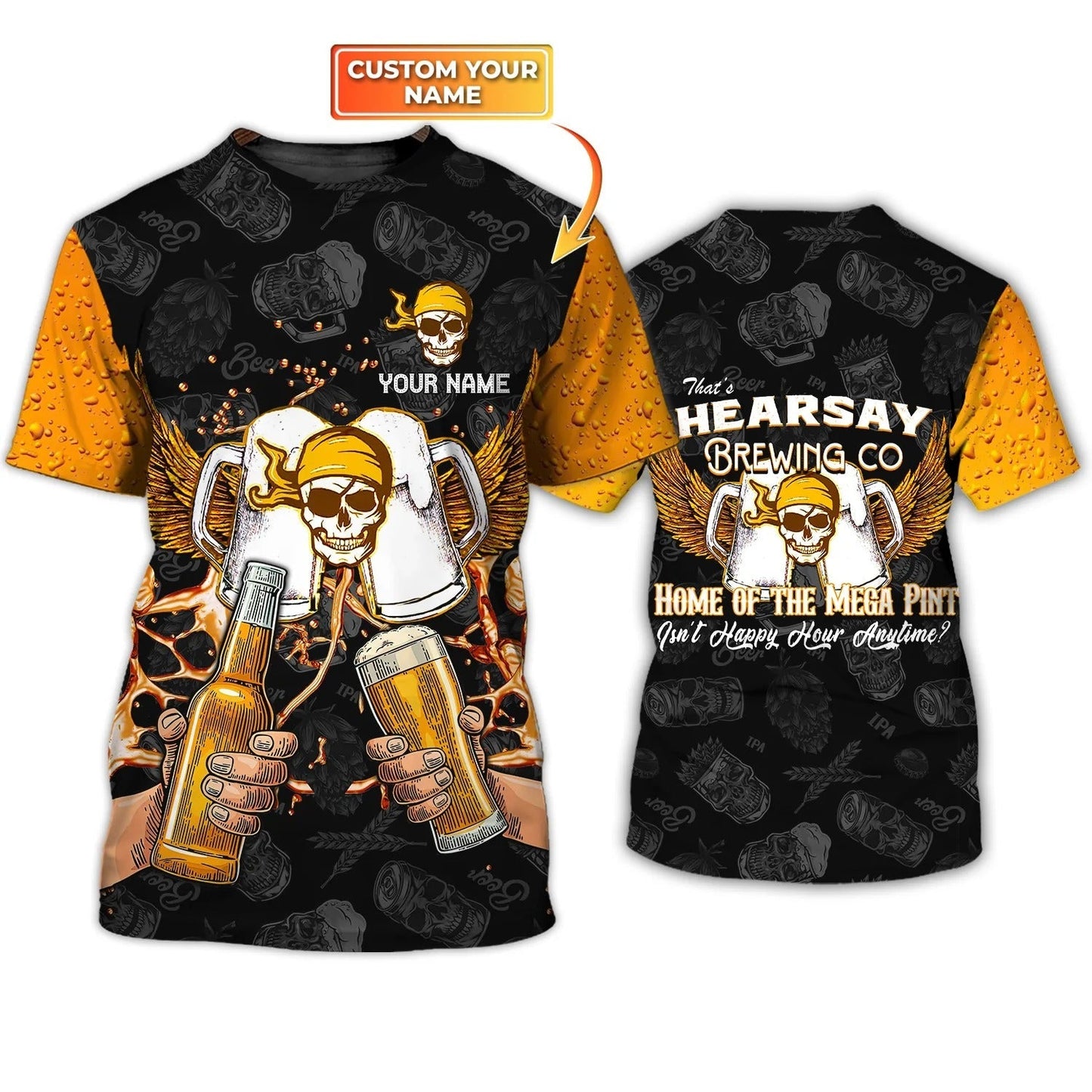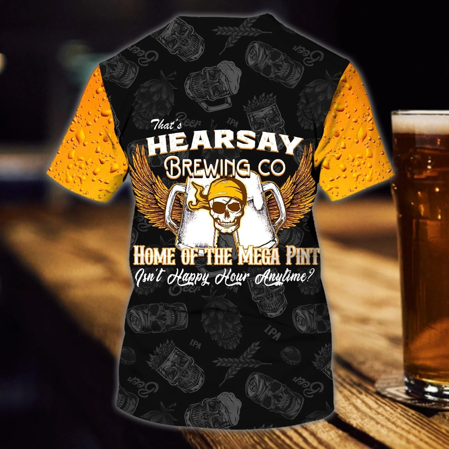 Personalized Hearsay Brewing Co T Shirt Home Of The Mega Pint Skull And Beer Shirts TO1821
