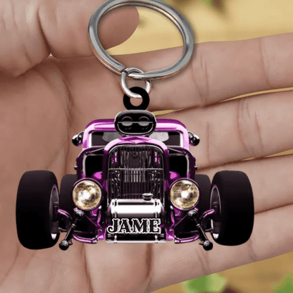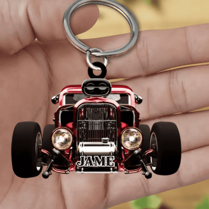 Personalized Hot Rod Chop Shop Flat Acrylic Keychain - Hot Rod Gift for Him KO0366