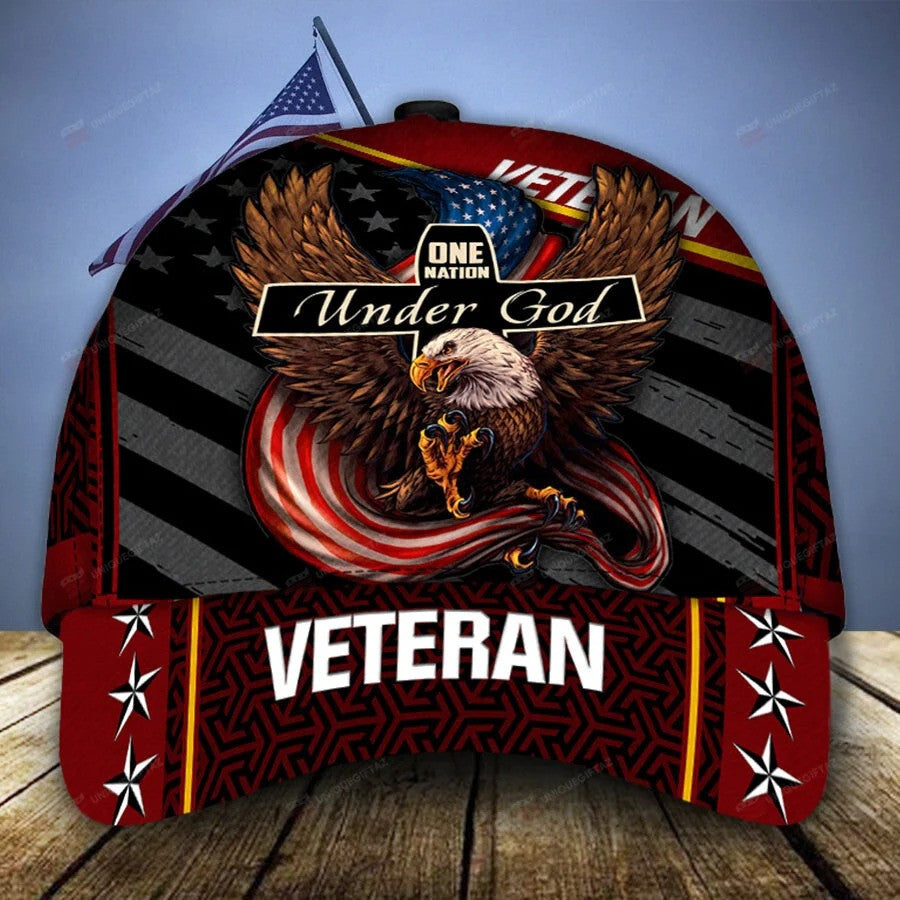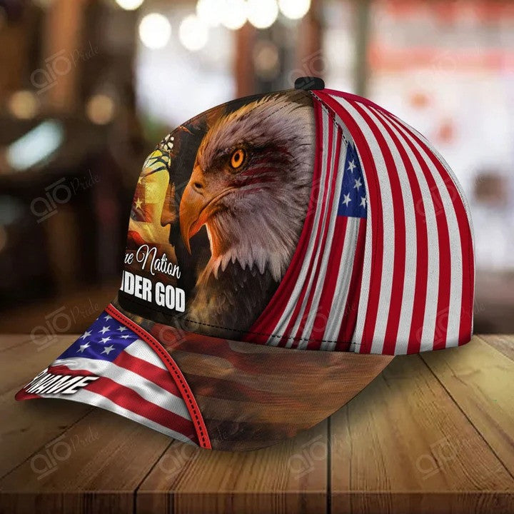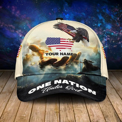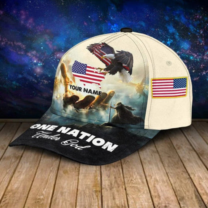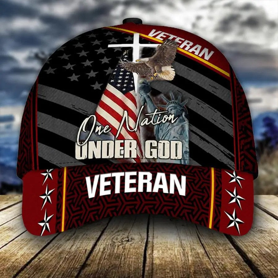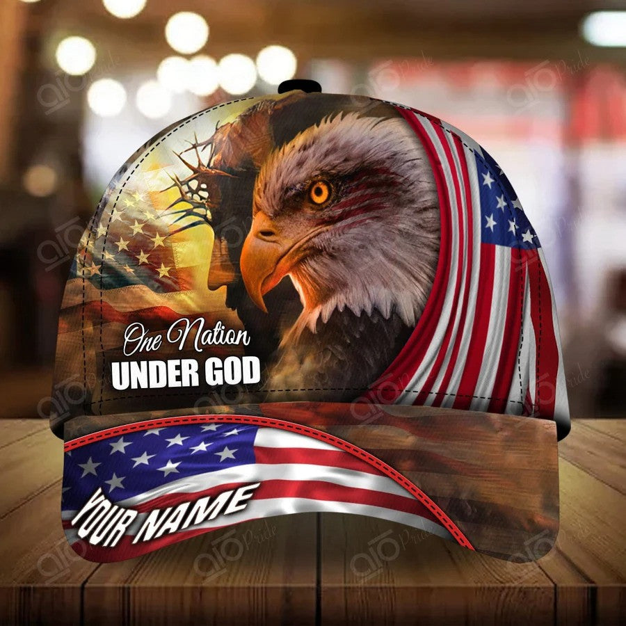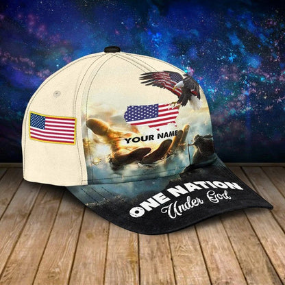 Personalized Jesus Cap, One Nation under God Veteran 3D Baseball Cap, 4th of July Veteran Hat for Him SO0166