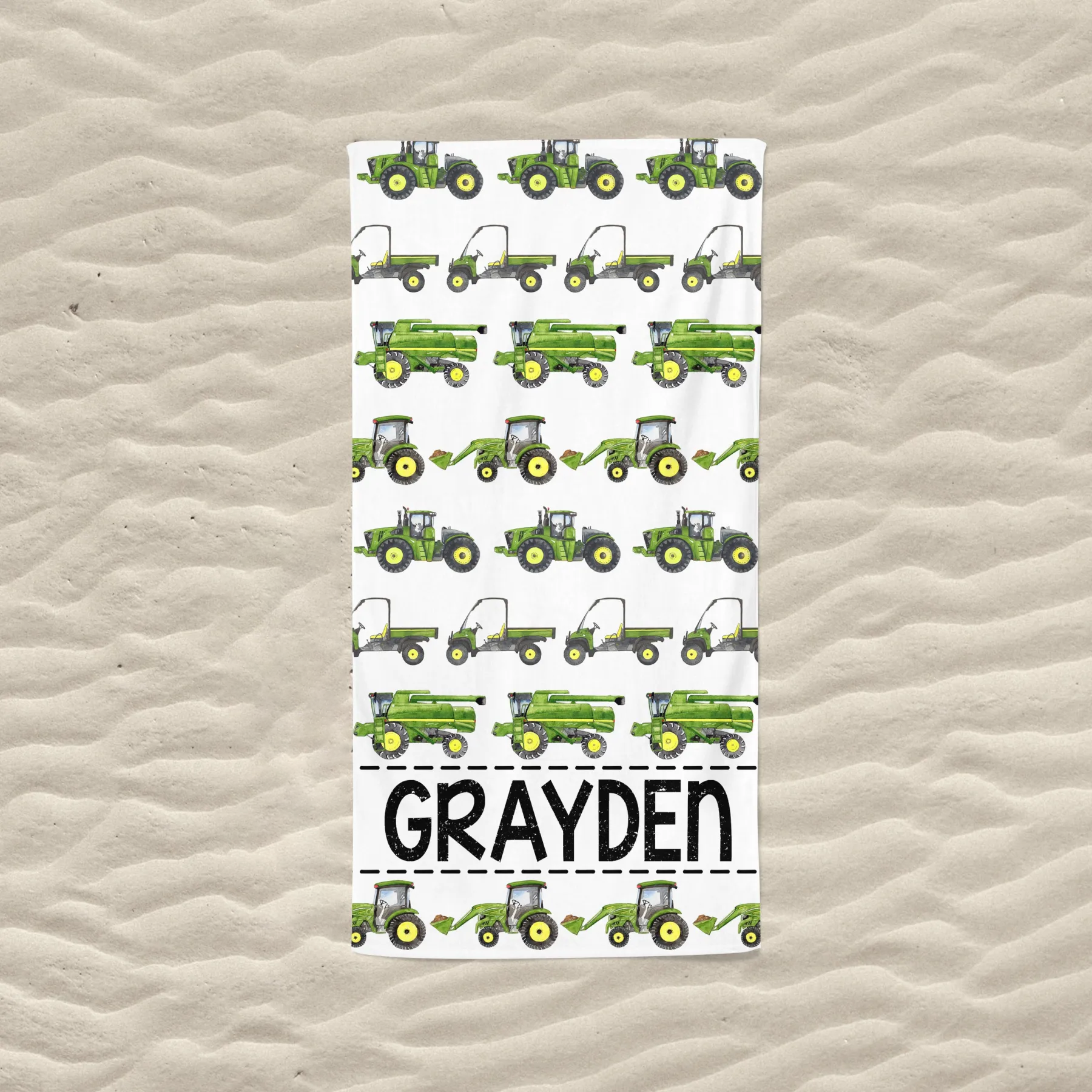Personalized Lovely Kid Beach Towel - Green Tractor Towel - Tractor Party - Beach - Pool - Summer - Birthday - Vacation