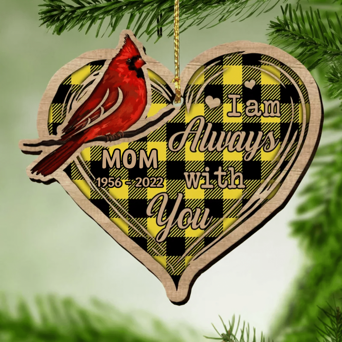 Personalized Memorial Christmas I Am Always With You Cardinal Heart Wood Ornament OO2938