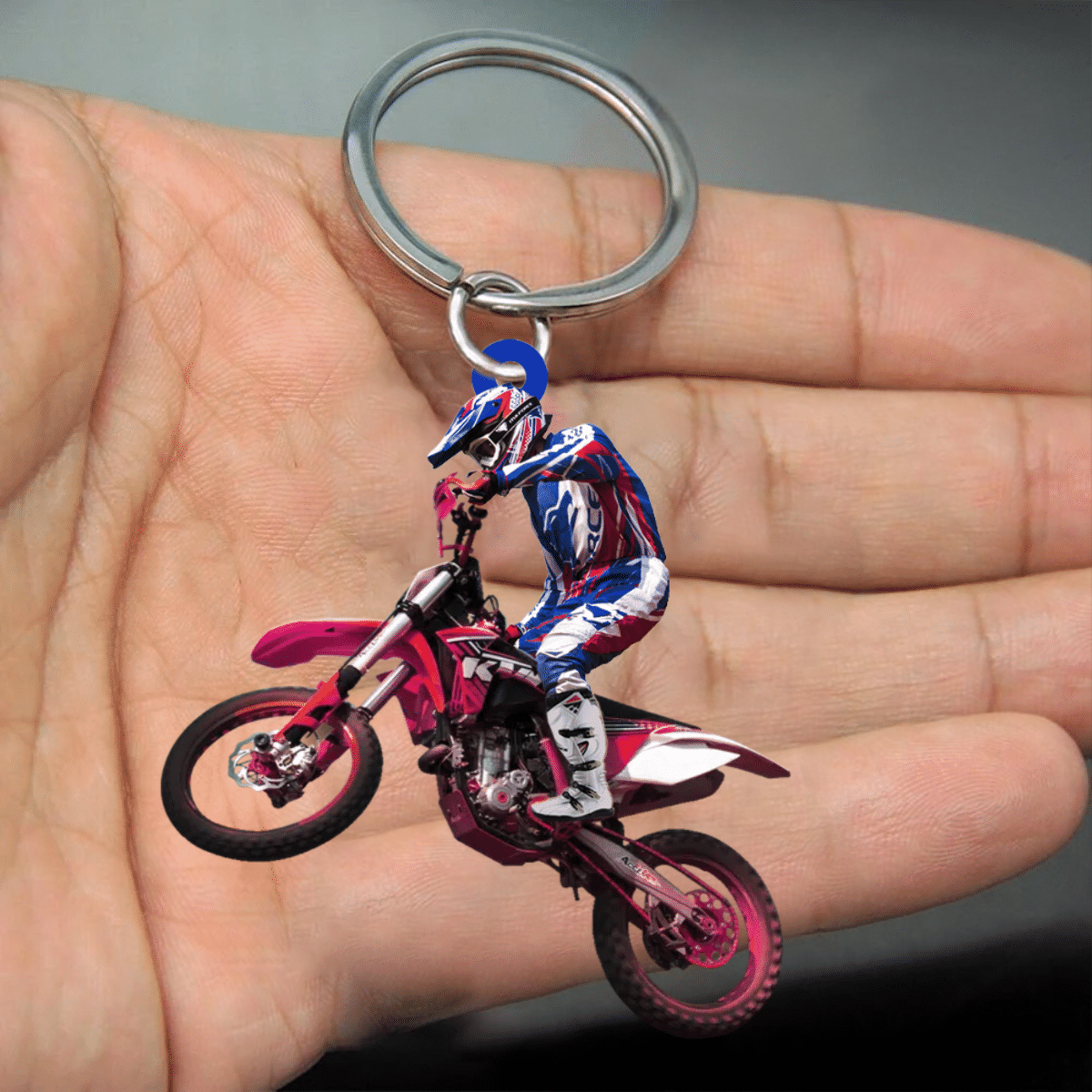 Personalized Motorbike Racing Flat Acrylic Keychain, Custom Motorbike Keychain for Motorcycle Lover KO0181