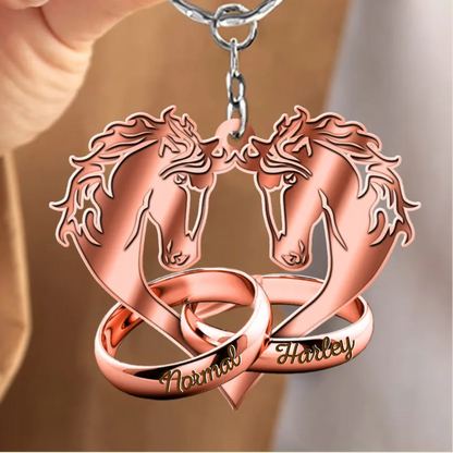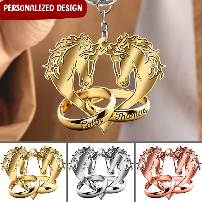 Personalized Multi Color Horse Couple Wedding Rings Husband Wife Valentine Gift Acrylic Keychain KO0103