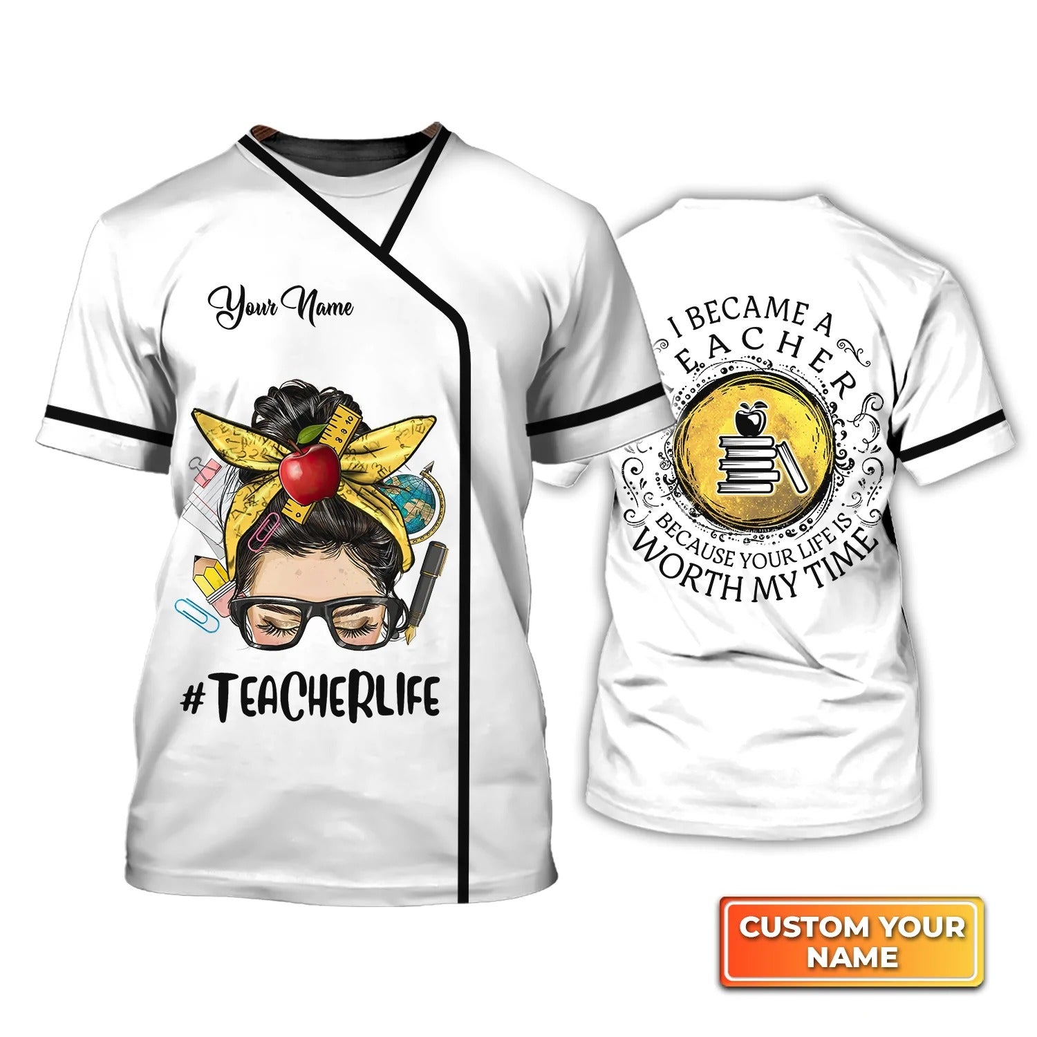 Personalized Name 3D Tshirt For Teacher, I Became A Teacher Because Your Life Is Worth My Time, Teacher Gifts TO2256