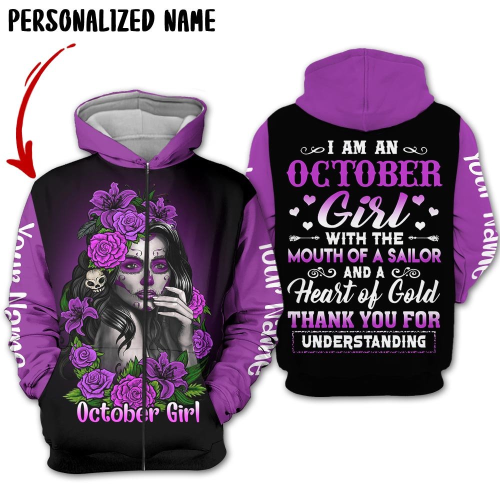 Personalized Name Birthday Outfit Birthday Outfit October Girl Sugar Skull Flower All Over Printed Birthday Shirt TO2818