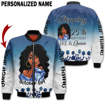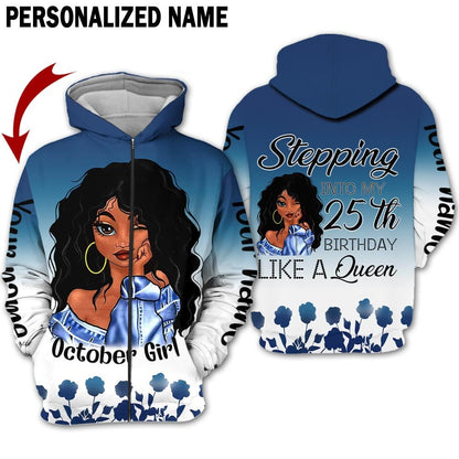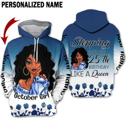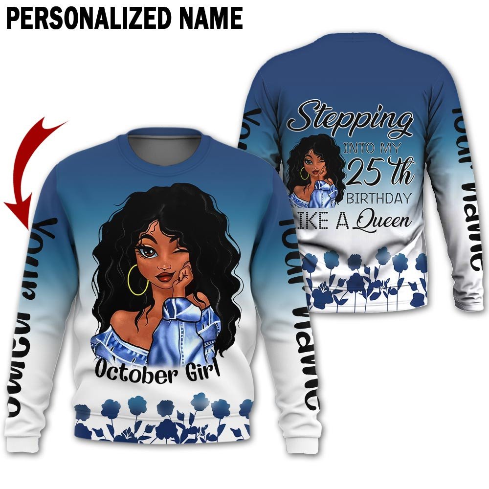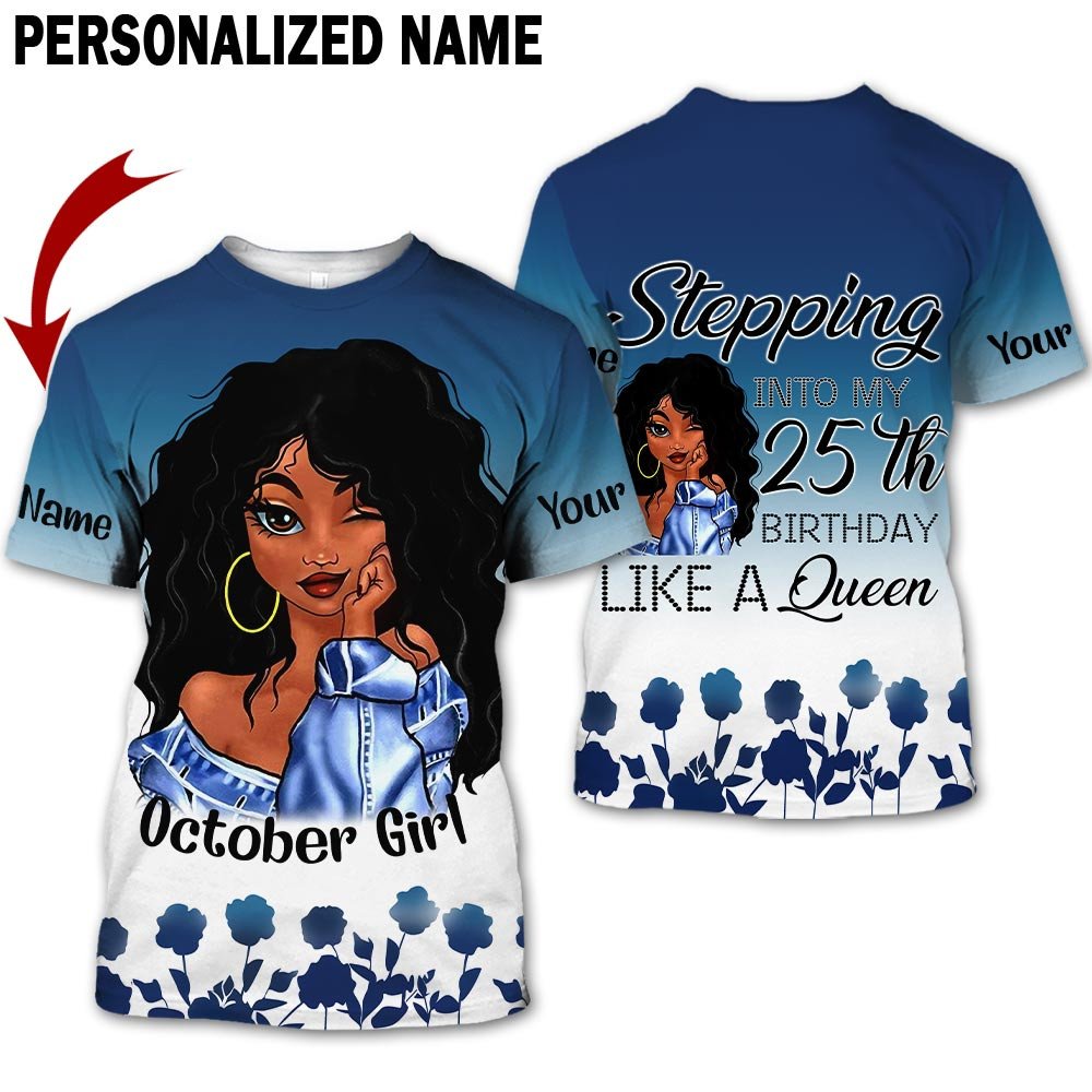 Personalized Name Birthday Outfit October Girl Blue Flower 25th Birthday Shirt For Women TO2827